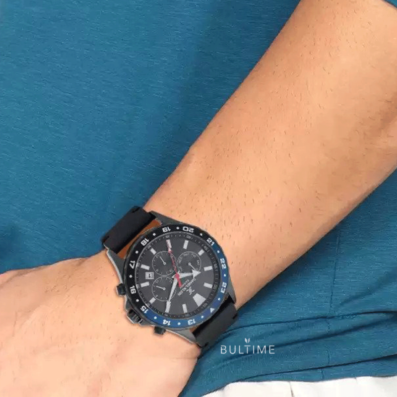Спортно-елегантен мъжки часовник Daniel Klein от колекцията Exclusive. Моделът е с корпус от висококачествена метална сплав и кожена каишка. Мултифункционален дисплей с показатели за дата, ден и двойно време. Фосфоресциращи стрелки и индекси. Стъкло минерал-кристал. Задвижва се от кварцов механизъм. Водоустойчивост 5 ATM - допускат се леки пръски и взимане на душ, не се препоръчва обилно мокрене.
