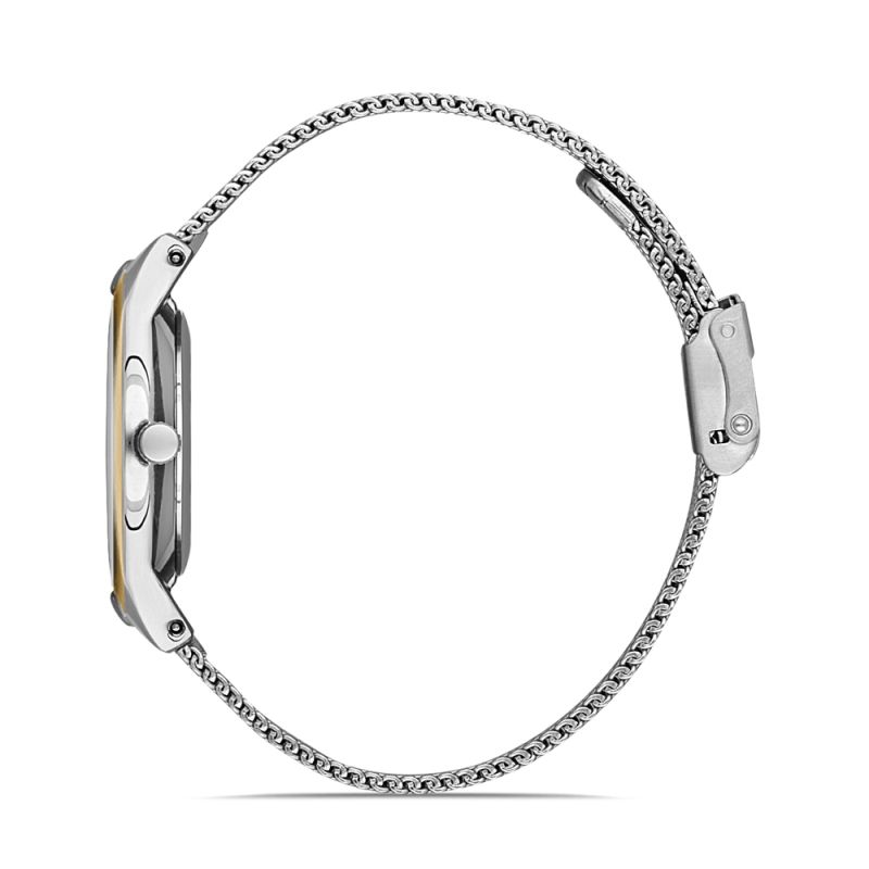 Дамски часовник Daniel Klein от колекцията Fiord с модерна и изчистена визия. Моделът е с корпус от метал и меш верижка от неръждаема стомана. Аналогов дисплей с минерално стъкло. Кварцов механизъм. Водоустойчивост 3 ATM - допускат се леки пръски, не се препоръчва обилно мокрене.