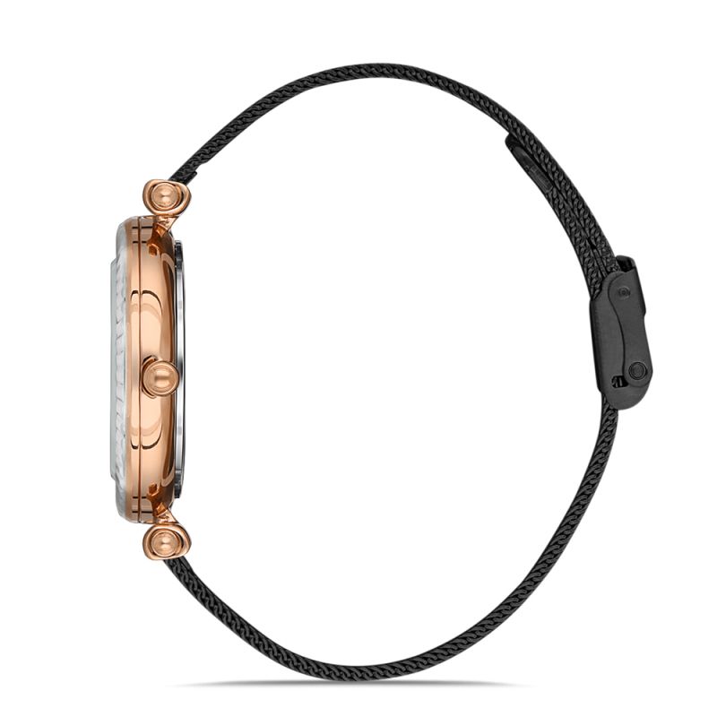Дамски часовник Daniel Klein от колекцията Premium. Моделът е с корпус от метал и меш верижка от неръждаема стомана в черен цвят. Аналогов дисплей с минерално стъкло и декорация от инкрустирани кристали. Задвижва се от кварцов механизъм. Водоустойчивост 3 ATM - допускат се леки пръски, не се препоръчва обилно мокрене.