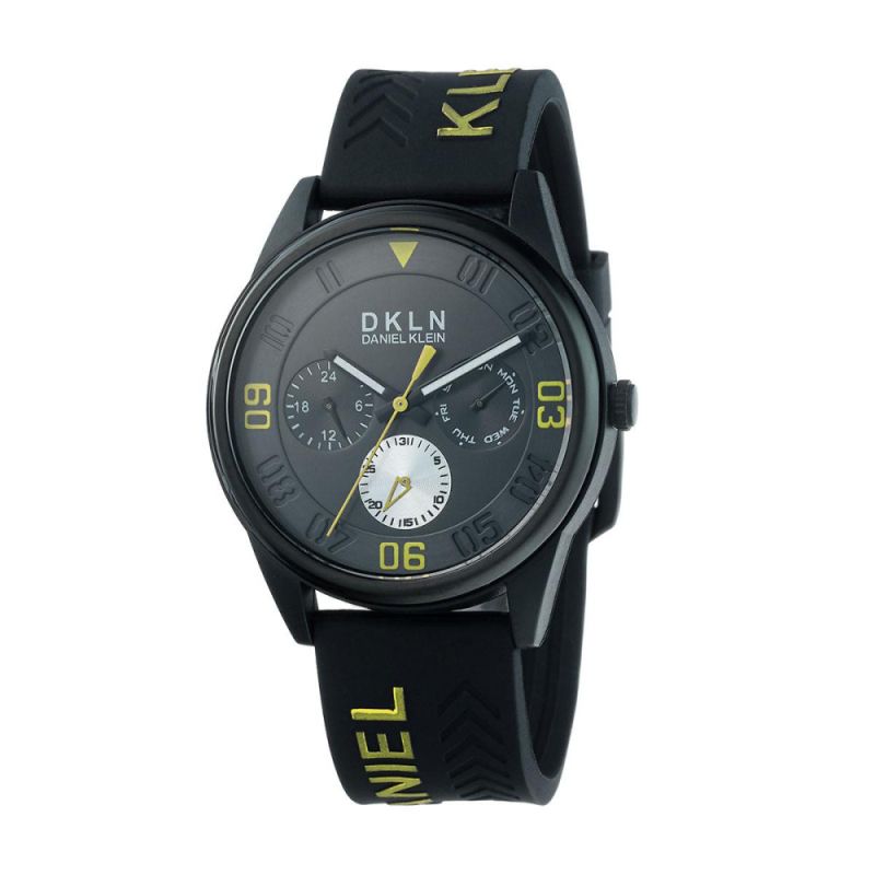 Мъжки часовник Daniel Klein с модерна спортна визия. Моделът е с корпус от полимер и силиконова каишка. Мултифункционален дисплей с показатели за ден, дата и 24 часов формат. Стъкло минерал-кристал. Задвижва се от кварцов механизъм. Водоустойчивост на часовника 3 ATM - допускат се леки пръски, не се препоръчва обилно мокрене.