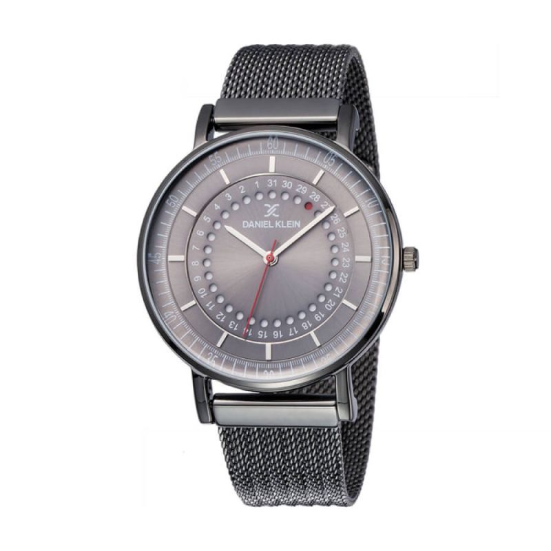 Мъжки часовник Daniel Klein с метален корпус и верижка от неръждаема стомана. Аналогов дисплей с показател за дата, представен в кръг по вътрешна окръжност. Стъкло минерал-кристал. Кварцов механизъм. Водоустойчивост на часовника 3 ATM - допускат се леки пръски, не се препоръчва обилно мокрене.