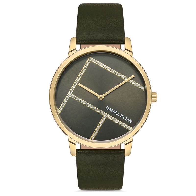 Дамски часовник Daniel Klein с елегантна и модерна визия от колекция Premium. Корпус от метал. Тъмнозелена кожена каишка. Аналогов дисплей с декорация от нежни кристали. Стъкло минерал-кристал. Кварцов механизъм. Водоустойчивост 3 ATM - допускат се леки пръски, не се препоръчва обилно мокрене.