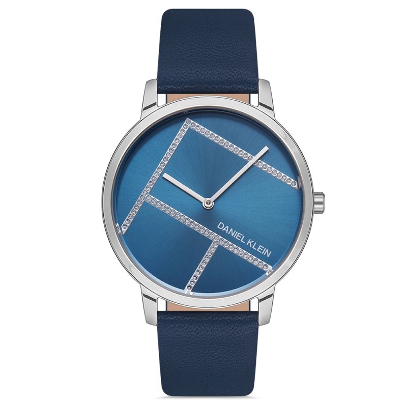 Дамски часовник Daniel Klein с елегантна и модерна визия от колекция Premium. Корпус от метал. Синя кожена каишка. Аналогов дисплей с декорация от нежни кристали. Стъкло минерал-кристал. Кварцов механизъм. Водоустойчивост 3 ATM - допускат се леки пръски, не се препоръчва обилно мокрене.