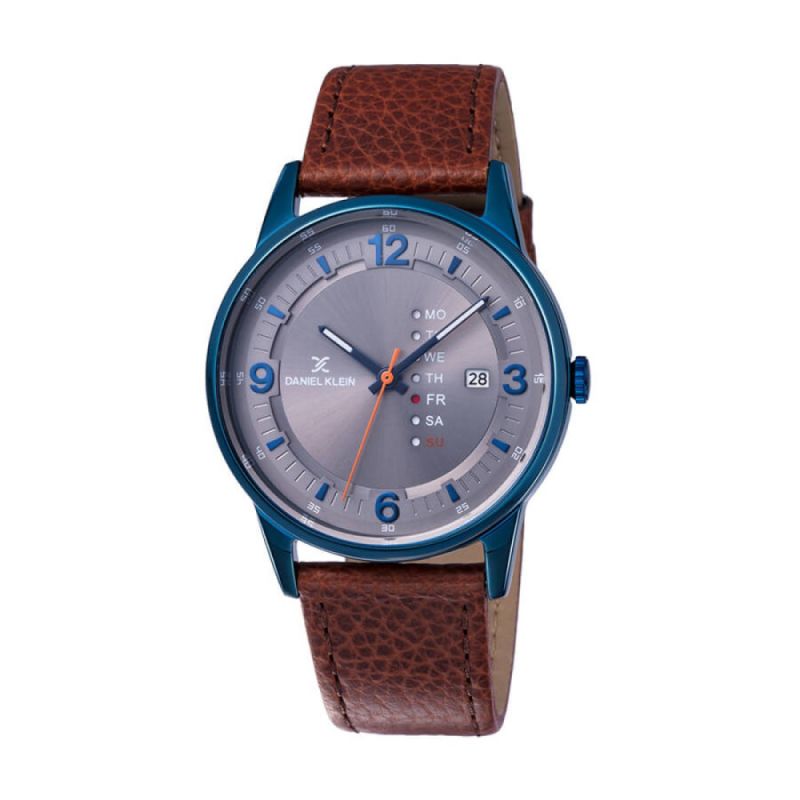 Мъжки часовник Daniel Klein със спортно-елегантен дизайн от колекцията Premium. Аналогов дисплей с показатели за дата и ден от седмицата. Метален корпус, съчетан с кафява кожена каишка. Стъкло минерал-кристал. Задвижва се от кварцов механизъм. Водоустойчивост 5 ATM - допускат се леки пръски и взимане на душ, не се препоръчва обилно мокрене.