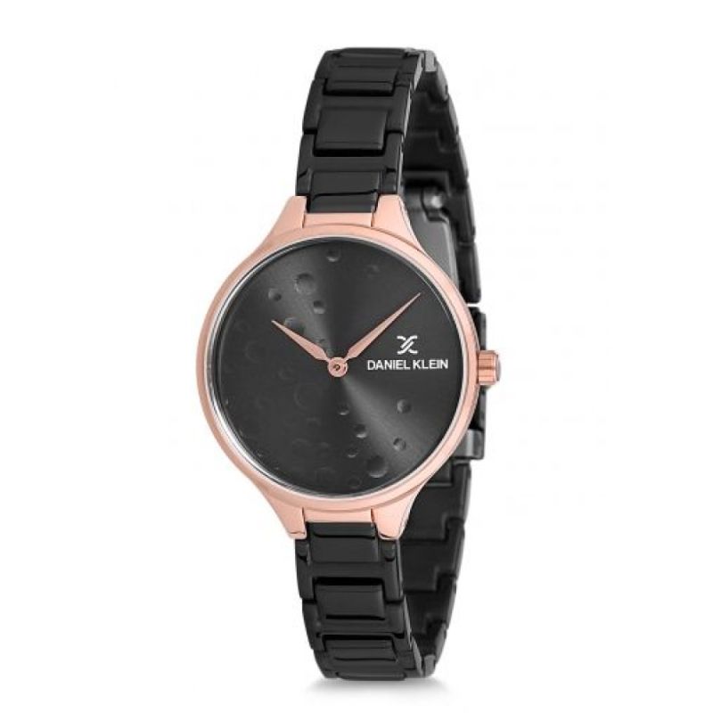 Дамски часовник Daniel Klein от колекцията Fiord. Черен аналогов дисплей с изчистен дизайн. Стъкло минерал-кристал. Метален корпус, съчетан с верижка от неръждаема стомана. Кварцов механизъм. Водоустойчивост 3 ATM - допускат се леки пръски, не се препоръчва обилно мокрене.