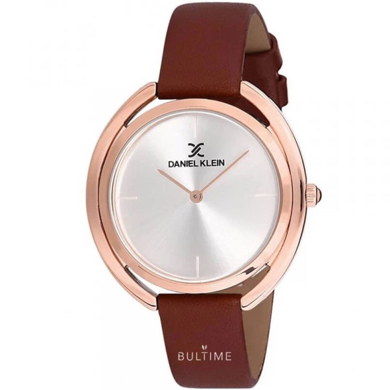 Дамски часовник Daniel Klein от колекцията Premium. Сребрист аналогов дисплей с изчистен дизайн. Стъкло минерал-кристал. Метален корпус, съчетан с кафява кожена каишка. Кварцов механизъм. Водоустойчивост 3 ATM - допускат се леки пръски, не се препоръчва обилно мокрене.