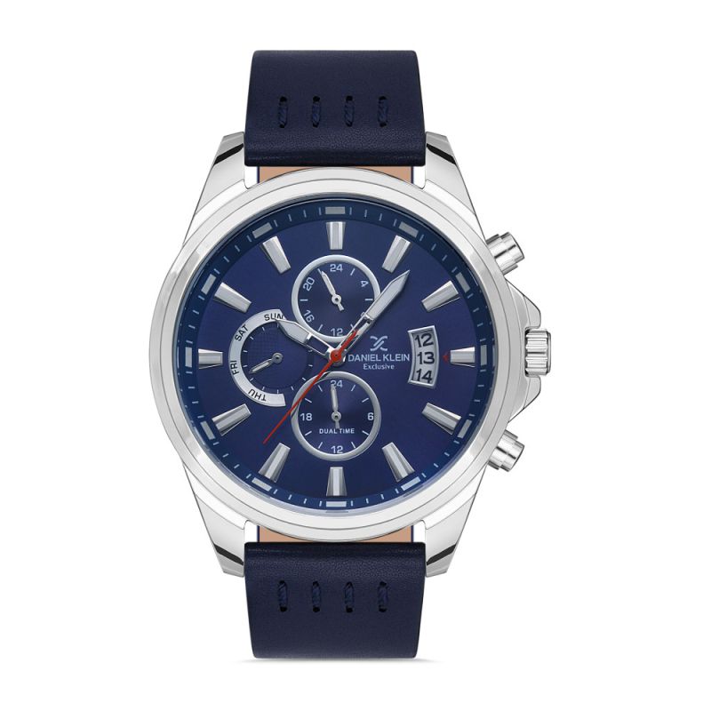 Елегантен мъжки часовник Daniel Klein от колекцията Exclusive. Метален корпус в комбинация с каишка от естествена кожа. Стилен мултифункционален дисплей с луминисцентно покритие на стрелките и индексите. Минерално стъкло, устойчиво на надраскване. Задвижва се от кварцов механизъм. Водоустойчивост 5 ATM - допускат се леки пръски и взимане на душ, не се препоръчва обилно мокрене.