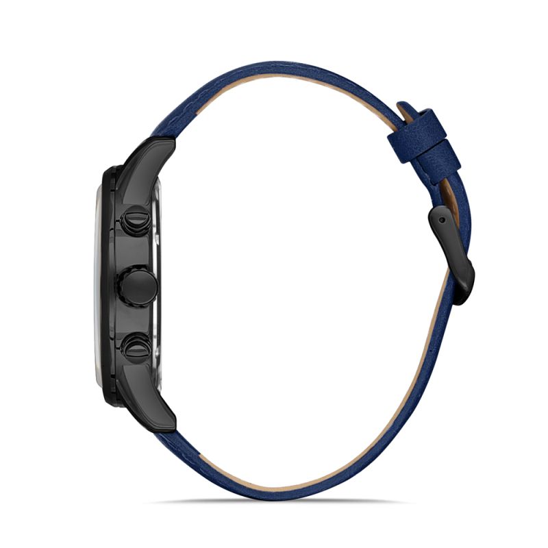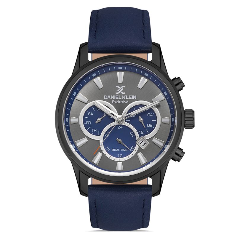 Спортно-елегантен модел мъжки часовник Daniel Klein от колекцията Exclusive. Корпус от метал. Синя кожена каишка. Мултифункционален дисплей с минерално стъкло и показатели за дата, ден от седмицата и двойно време. Кварцов механизъм. Водоустойчивост 5 ATM - допускат се леки пръски и взимане на душ, не се препоръчва обилно мокрене.