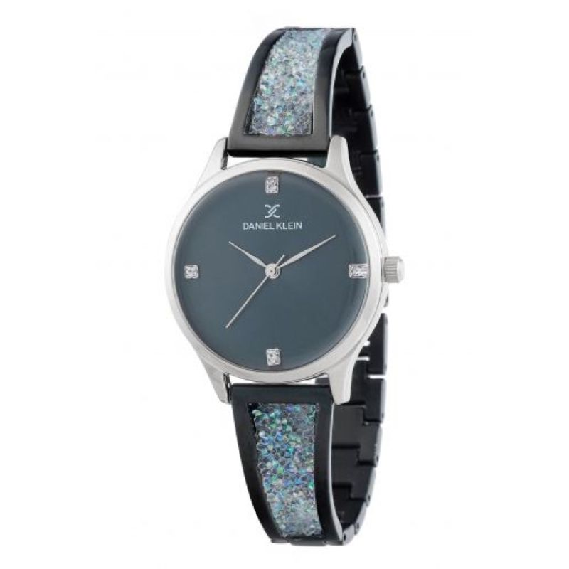 Дамски часовник Daniel Klein от колекцията Premium. Аналогов дисплей с изчистен дизайн и декорация от четири инкрустирани кристала. Стъкло минерал-кристал. Корпус изработен от висококачествена метална сплав. Верижка от неръждаема стомана с бляскави детайли. Часовникът се задвижва от кварцов механизъм. Водоустойчивост 3 ATM - допускат се леки пръски, не се препоръчва обилно мокрене.