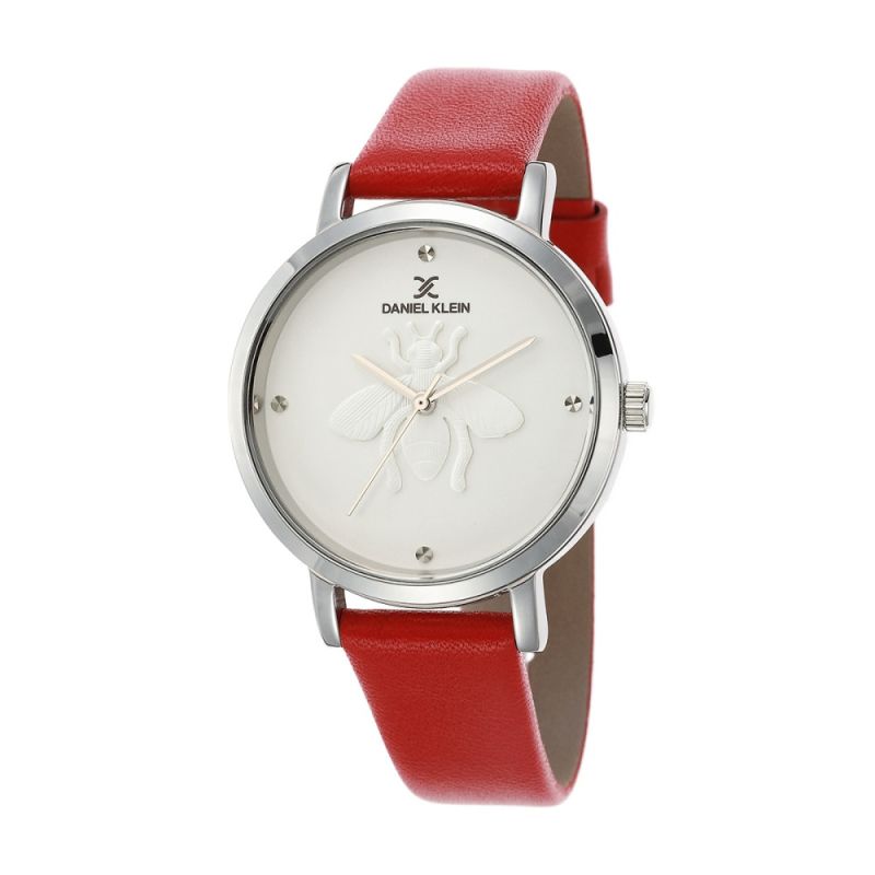Дамски часовник Daniel Klein с модерна визия от колекцията Trendy. Аналогов дисплей със стилизирана пчела в центъра. Стъкло минерал-кристал. Метален корпус, съчетан с кожена каишка. Кварцов механизъм. Водоустойчивост 3 ATM - допускат се леки пръски, не се препоръчва обилно мокрене.