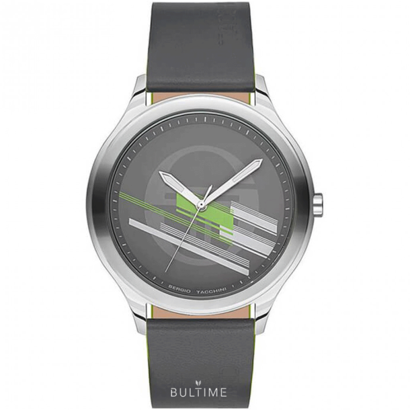 Спортно-елегантен мъжки часовник Sergio Tacchini от колекцията City.  Моделът е с аналогов дисплей с графичен принт. Стъкло минерал-кристал. Корпус от неръждаема стомана. Каишка от естествена кожа. Кварцов механизъм. Водоустойчивост 5 ATM - допускат се леки пръски и взимане на душ, не се препоръчва обилно мокрене.