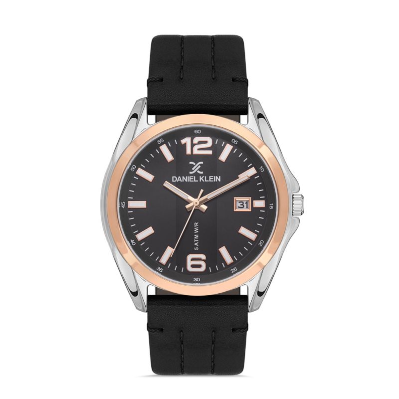 Мъжки часовник Daniel Klein с елегантна визия от колекцията Premium. Аналогов дисплей в черен цвят с показател за дата. Луминисцентно покритие на стрелките и индексите. Минерално стъкло, устойчиво на надраскване. Метален корпус, в комбинация с каишка от естествена кожа. Кварцов механизъм. Водоустойчивост 5 ATM - допускат се леки пръски и взимане на душ, не се препоръчва обилно мокрене.