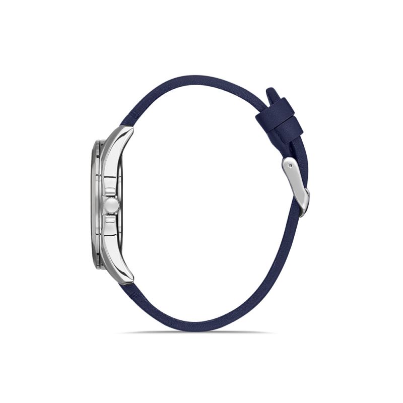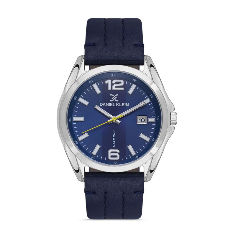 Мъжки часовник Daniel Klein с елегантна визия от колекцията Premium. Аналогов дисплей в син цвят с показател за дата. Луминисцентно покритие на стрелките и индексите. Минерално стъкло, устойчиво на надраскване. Метален корпус, в комбинация с каишка от естествена кожа. Кварцов механизъм. Водоустойчивост 5 ATM - допускат се леки пръски и взимане на душ, не се препоръчва обилно мокрене.
