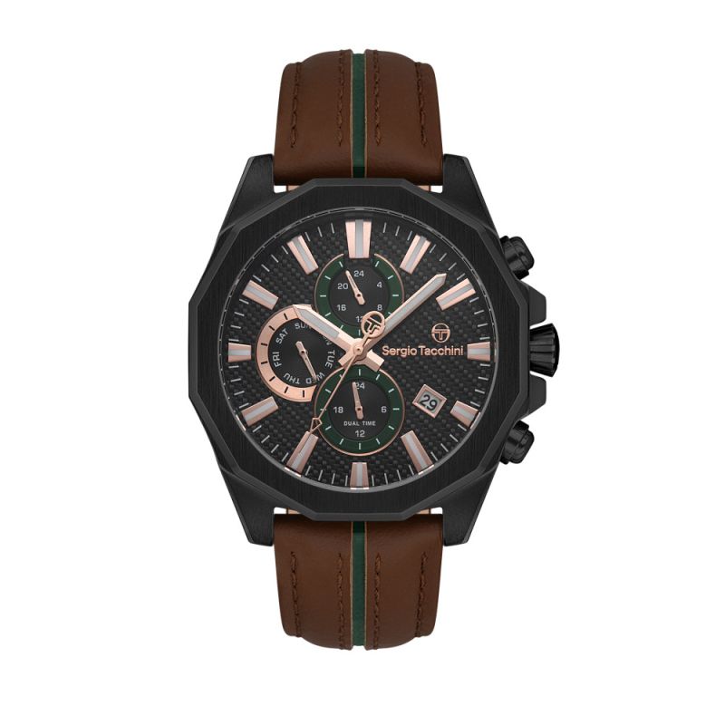 Мъжки часовник SERGIO TACCHINI ST.1.10373-5 с каишка/верижка от Естествена кожа и Кварцов механизъм | Chronodeluxo.bg
