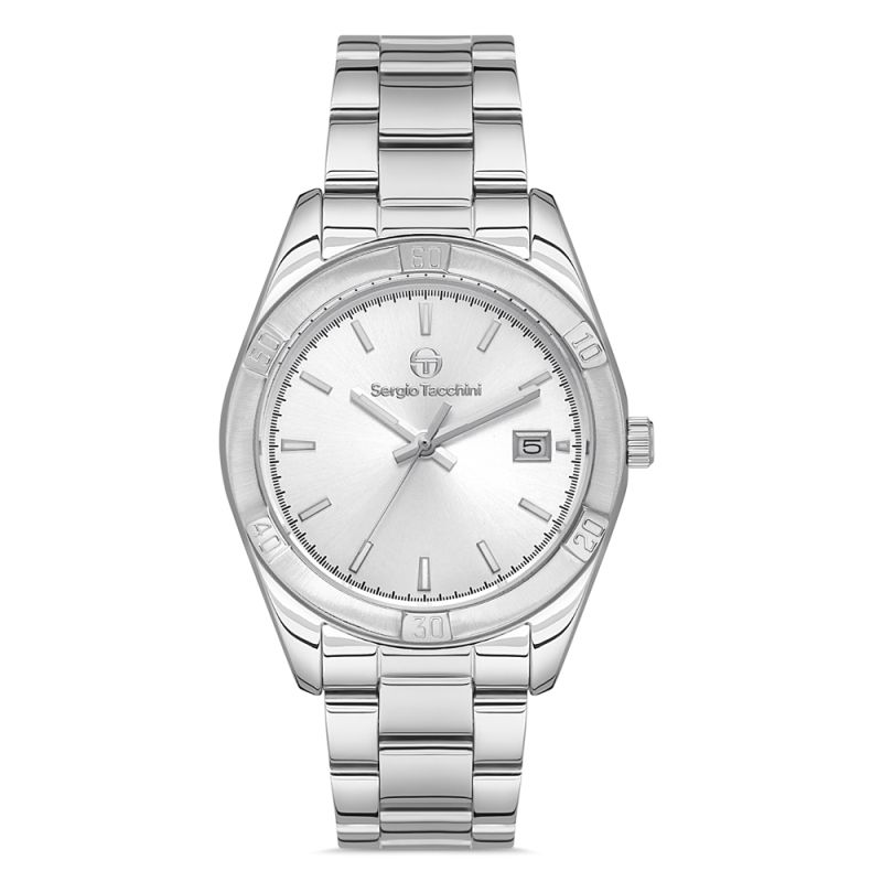 Дамски часовник Sergio Tacchini с изчистена и модерна визия от колекцията Archivio. Корпус от месинг. Верижка от неръждаема стомана в сребрист цвят. Аналогов дисплей с минерално стъкло и показател за дата. Кварцов механизъм. Водоустойчивост 5 ATM - допускат се леки пръски и взимане на душ, не се препоръчва обилно мокрене.