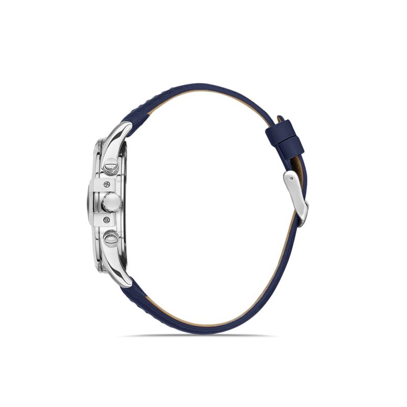 Спортно-елегантен мъжки часовник Daniel Klein с модерна визия от колекцията Exclusive. Моделът е с метален корпус съчетан с каишка от естесвена кожа. Мултифункционален дисплей с показатели за дата, ден от седмицата и двойно време. Луминисцентно покритие на стрелките и индексите. Минерално стъкло, устойчиво на надраскване. Часовникът се задвижва от кварцов механизъм. Водоустойчивост 5 ATM - допускат се леки пръски и взимане на душ, не се препоръчва обилно мокрене.