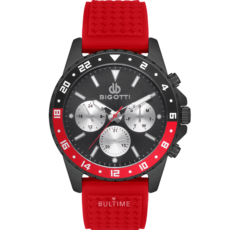 Мъжки часовник Bigotti с метален корпус. Силиконова каишка в червен цвят.