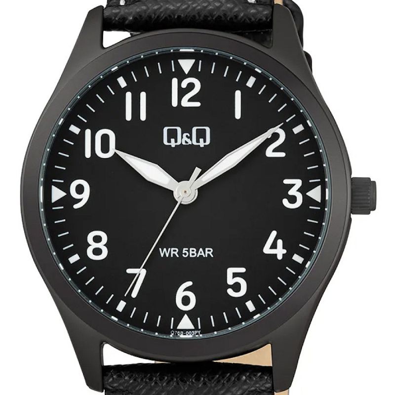 Мъжки часовник Q&Q Q76B-003PY с Кожена каишка/верижка и Кварцов механизъм